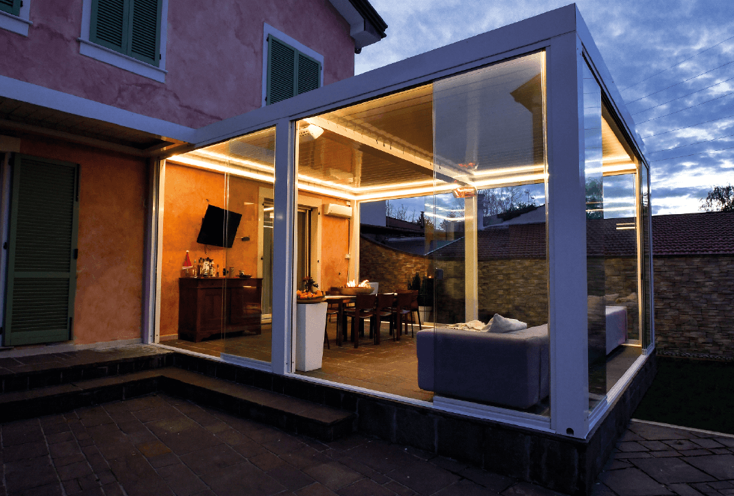 Decidi tu quanta luce far entrare modulandola con le lame orientabili. Con le chiusure perimetrali, vetri o tende, ottieni uno spazio outdoor fruibile tutto l'anno, in ogni stagione.