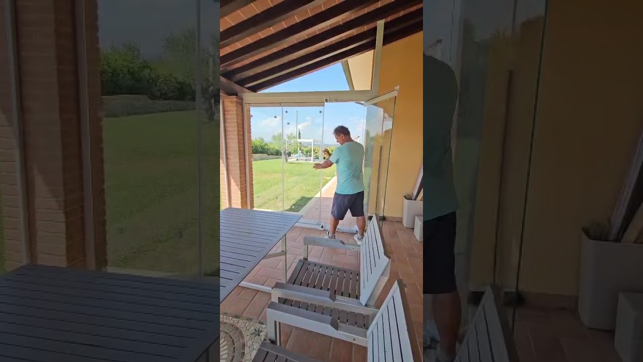 Il sistema scorrevole consente alle ante in vetro di impacchettarsi lateralmente, lasciando completamente aperto lo spazio quando desideri.