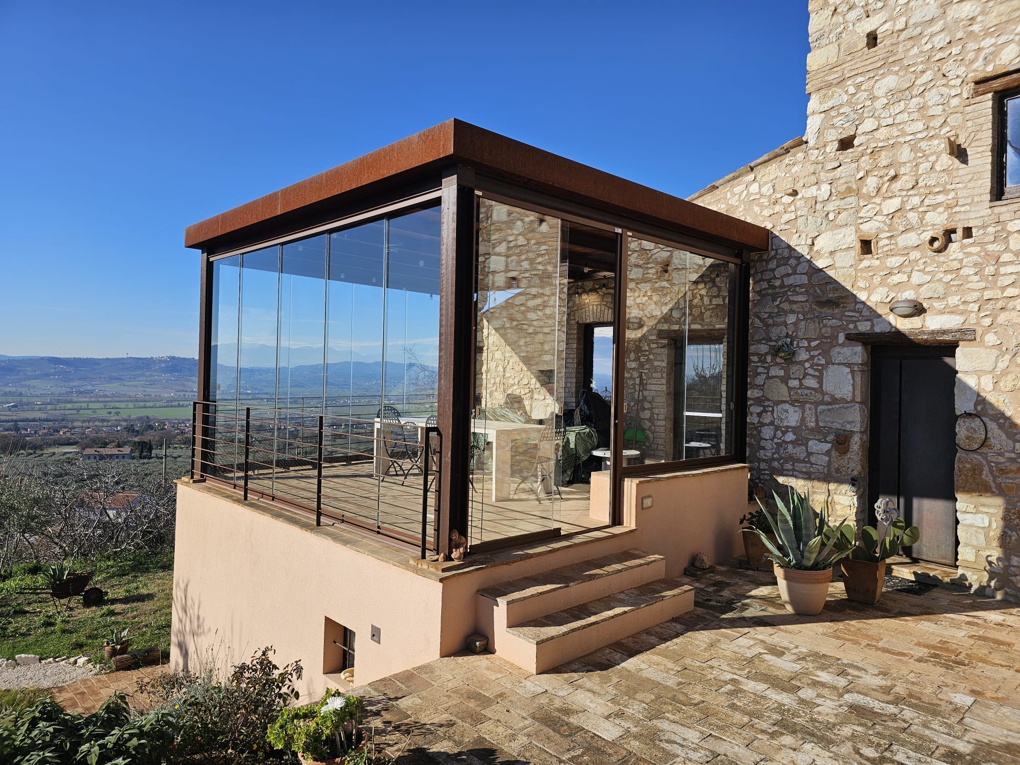 Le nostre vetrate panoramiche scorrevoli permettono di chiudere gli spazi esterni senza profili verticali invasivi. Il risultato?